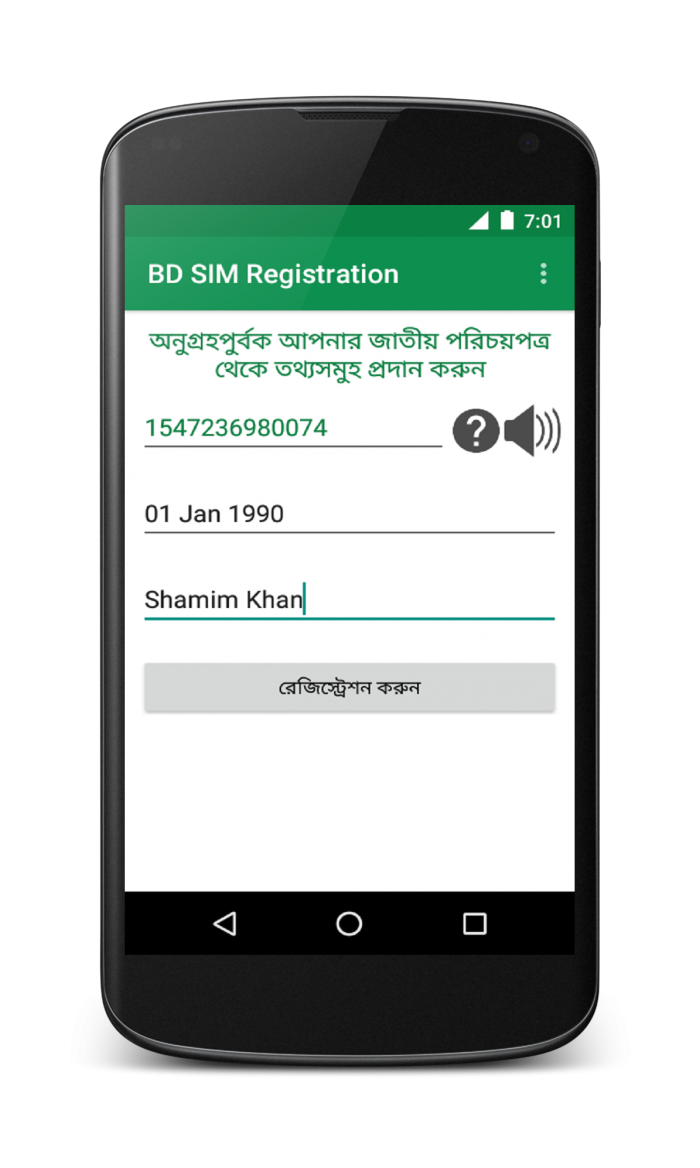 অ্যাপ লিঙ্কঃ https://play.google.com/store/apps/details?id=com.codelab.simreg