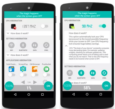 অ্যান্ড্রয়েড ডিভাইস আপনি যখন ব্যবহার করবেন না, তখনও যখন সব সময় কাজ করে ! হাইবারনেশন ম্যানেজার তখন কাজ করবে আপনি আপনার ডিভাইস ব্যবহার করবেন না যখন আপনি ব্যাটারি সংরক্ষণ করতে সাহায্য করে. পর্দা বন্ধ যায়, এটা আপনার প্রসেসর (সিপিইউ), সেটিংস এবং আপনার ব্যাটারী ক্ষমতা সংরক্ষণ করবে অ্যাপ্লিকেশন hibernates.