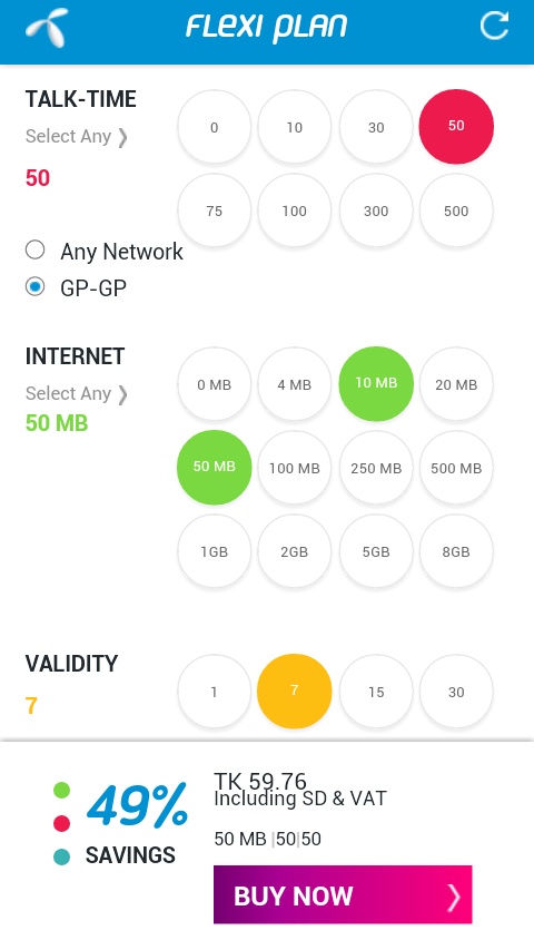 কিন্তু আপনারা সবাই জানেন জিপি মানু নতুন একটি ফিচার চালু করেছে সেটি হলো Flexi-Plan এর মাধ্যমে আপনি তাদের Website এ গিয়ে নিজের পছন্দ মত Internet Plan,TalkTime,SMS, কিনতে পারবেন,ইচ্ছা মত মেয়াদ করে নিতে পারবেন,এতে করে আপনি সহজেই যেকোন প্যাকের এম্বি বাড়িয়ে নিতে পারবেন।