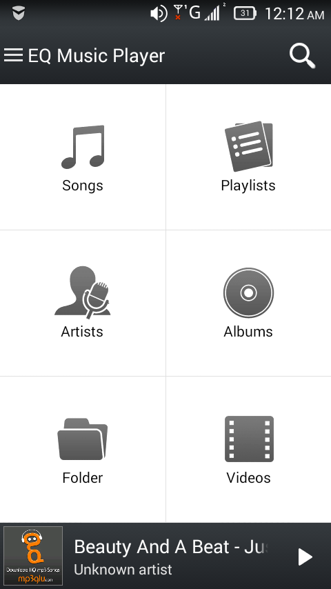 ১। এই ফটোতে দেখুন এপ টি ওপেন করলে এরকম মেনু আসবে, এখানে সং অ্যালবাম ফোল্ডার ভিডিও সব আছে।