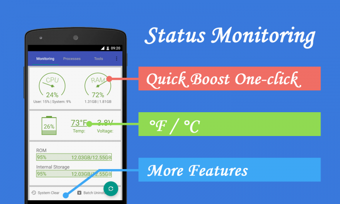 1. Monitor status (cpu, memory, battery) android