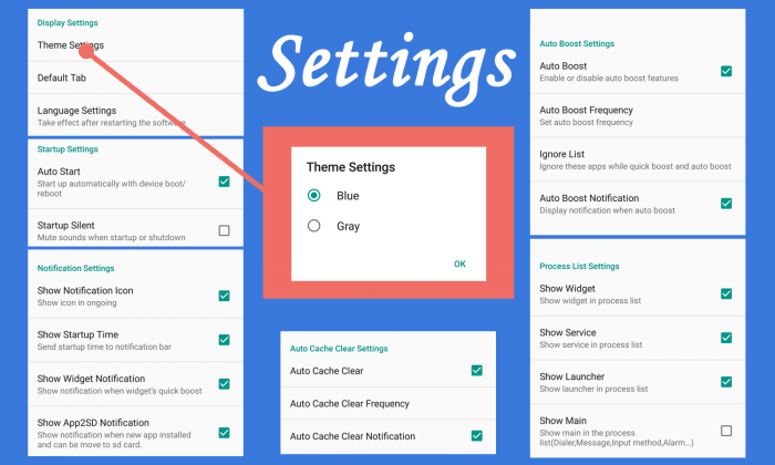 2. Process Manager (Auto Boost and Quick Boost can distinguish different types of processes thus will not kill fatal system processes and apps in Ignore List.)