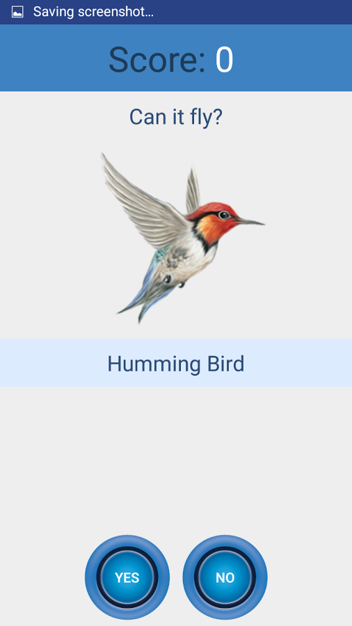 In the game screen, you can see an animal picture and the name of that animal. You can also see two button (YES and NO) at the bottom. At this time you have to identify the animal can fly or not. Touch the YES NO button to increase your points within a limited time based on selected game mode. Challenge yourself and see how much you can identify the animal can fly or not.
