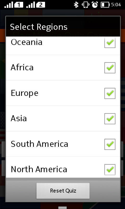 * “Flag Mobile Quiz Game এ আপনি কোন মহাদেশের ফ্ল্যাগের কুইজ এর দিবেন তা সিলেক্ট করার সুবিধা যেমন :