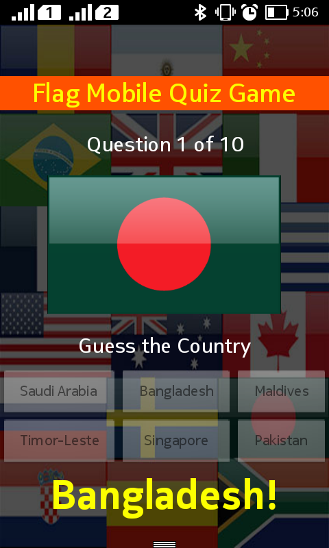 * “Flag Mobile Quiz Game এ রয়েছে পৃথিবীর ২০০ টির ও বেশী দেশের ফ্ল্যাগের কুইজ