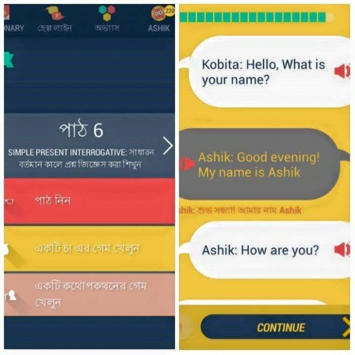দারুণ না!? এপটি আপনাকে একদম শুরু মানে What's your name থেকে পূর্ণাঙ ইংরেজি শিখাতে সাহায্য করবে।! কিভাবে কনভার্সন করতে হবে,কিভাবে সেন্টেন্স বানাতে হবে,ভুল হলে কেন ভুল হয়েছে সেটাও বলে দিবে। সঠিক হলে কেনো সঠিক হয়েছে সেটাও ব্যাখ্যা সহ বলে দিবে সাথে সুপার,দারুণ!!বলে আপনাকে উৎসাহ দিবে।