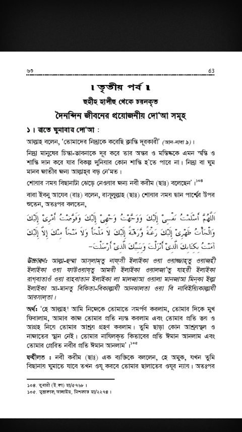 ৩য় পর্ব : দৈনন্দিন জীবনের প্রয়োজনী দোয়া সমূহ (মোট ৬৭টি, তাছাড়াও বিবাহ খুতবা সংযুক্ত করা হয়েছে: [ ছহীহ হাদিস থেকে চয়নকৃত ]