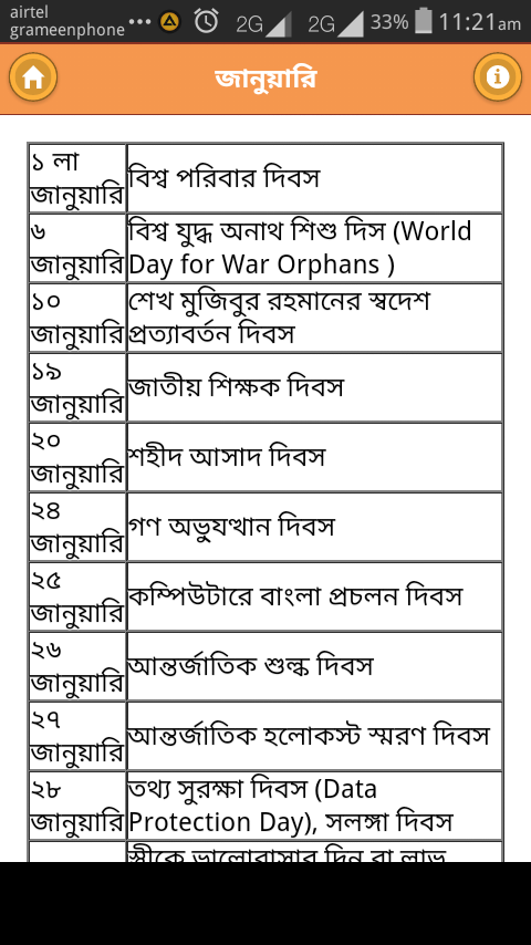স্পেশাল এই এপ্স টা দিয়ে আপনি জানতে পারবেন কোন মাসের কত তারিখে কোন দিবস। আমরা অনেকেই এই জিনিস টা জানি না। আমাদের আসলে সাধারণ জ্ঞান এই জিনিসটা কম আছে। অনেক ক্ষেত্রে এগুলো আমাদের প্রয়োজন পড়ে। জীবনের প্রতিটি ক্ষেত্রে General Knowledge দরকার।কলেজের পরিক্ষা, এডমিশন, চাকুরীর পরিক্ষা।