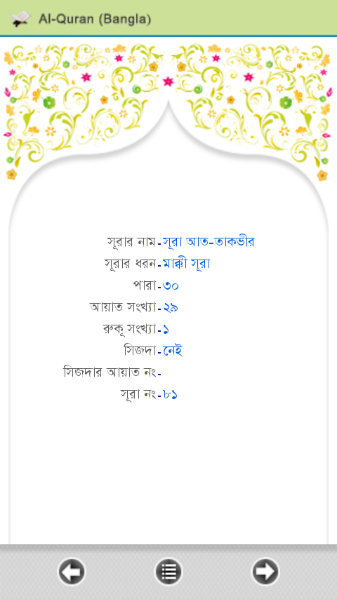 *প্রতিটি সুরার আয়াত কয়টি,রুকু কয়টি,সিজদাহ,পারা সব,