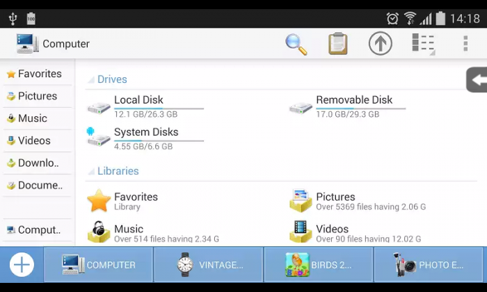 অ্যাপে গিয়েই আপনি আপনার Phone Storage SD কাড কত খানি ঘিরে আছে কতখানি ফকা আছে তা দেখতে পাবেন Computer এর মত করে।