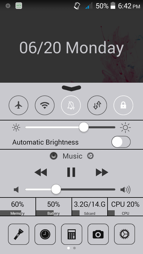 দ্বিতীয়ত আপনার বর্তমান ফোনের নটিফিকেশন বারে যে যে সুবিধ গুলো নে সে গুলি স্পব পাবেন (Flash light, Mp3 player, CPU-Memory-Battry details, এবং আরো অনেক