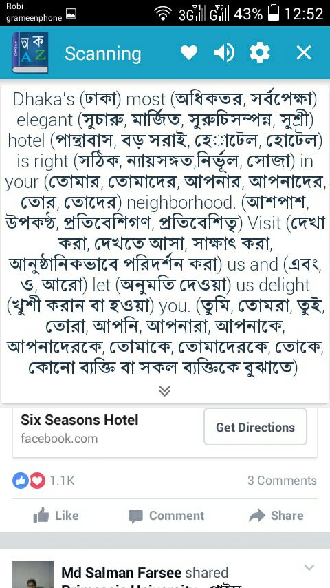 তার পর আপনার ফেইজবুকের যেকোনো স্ট্যাটাস অথবা যেকোন আপস যে আপনাকে কপি করতে দিবে সেই আপস থেকে শব্দের অর্থ জানতে পারবেন আপনি সধু ওয়ার্ড টার ওপর লং প্রেস করে কপি করেন সাথে সাথে মেজিক দেখুন।