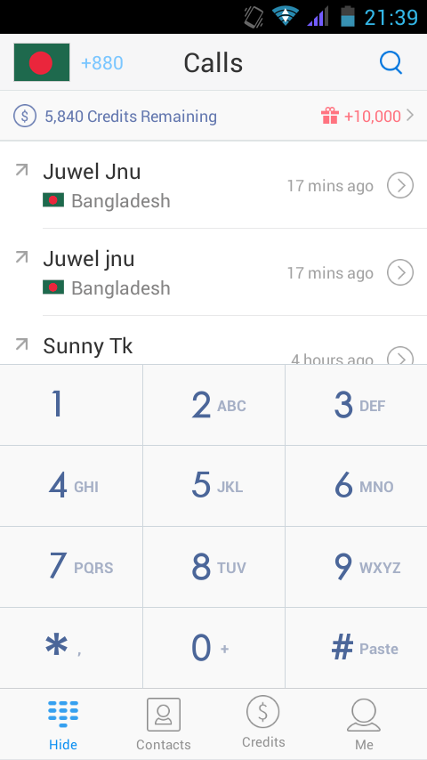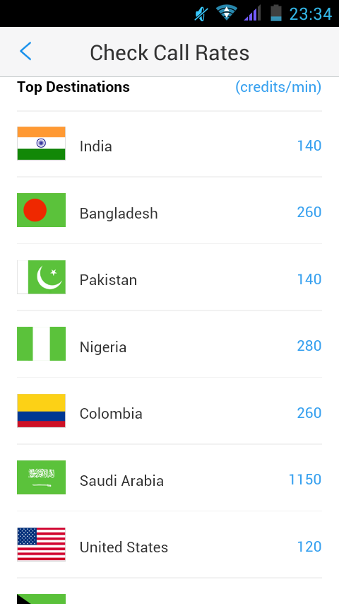 ভিন্ন ভিন্ন দেশে কল করার জন্য আছে ভিন্ন ভিন্ন ক্রেডিট রেট। বাংলাদেশের যেকোন নাম্বারে কথা বলার জন্য যেখানে খরচ হবে ২৬০ ক্রেডিট, ভারতে ও পাকিস্তানে কথা বলার জন্য সেখানে খরচ হবে মাত্র ১৪০ ক্রেডিট (বাংলাদেশের রেটের প্রায় অর্ধেক)। আমেরিকা ১২০, মালেশিয়া ৩৩০, রাশিয়া ৯০, জার্মানি ২৪০, সৌদি আরব ১১৫০, আরব আমিরাত ১৬৩০ ক্রেডিট। তারমানে দেশভেদে বেশ তারতম্য রয়েছে।