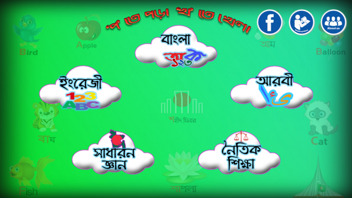 অতিরিক্ত বাংলাদেশ সম্পর্কে সাধারন জ্ঞান, সংখ্যা, নৈতিক সাধারন শিক্ষা গুলো জানতে পারবে। এর চিত্তাকর্ষক চিত্রালংকরণ ও আকর্ষণীয় ব্যাকগ্রাউন্ড মিউজিক শিশুদের শেখার প্রক্রিয়াকে করবে সহজ ও আনন্দময় (ইনশা আল্লাহ)। আজই ডাউনলোড করুন অ্যাপটি আর আপনার শিশুর সাথে উপভোগ করুন আনন্দময় ও মজার সময়। এই অ্যাপ্লিকেশন আপনাদের শিশুদের জন্য বিশেষভাবে উপযুক্ত।