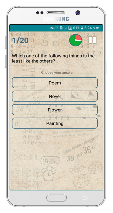 অ্যাপটির প্রথমেই রয়েছে অপশনটি এর মাধমে আপনি পড়াশুনার করে প্রস্তুতি গ্রহন করতে পারবেন। এবং দ্বিতীয় অপশনে রয়েছে এ ক্লিক করলেই শুরু হয়ে যাবে স্কিল টেস্ট সেগমেন্ট। আপনাকে নির্দিষ্ট সময়ের মধ্যে প্রশ্নের উত্তর দিতে হবে।