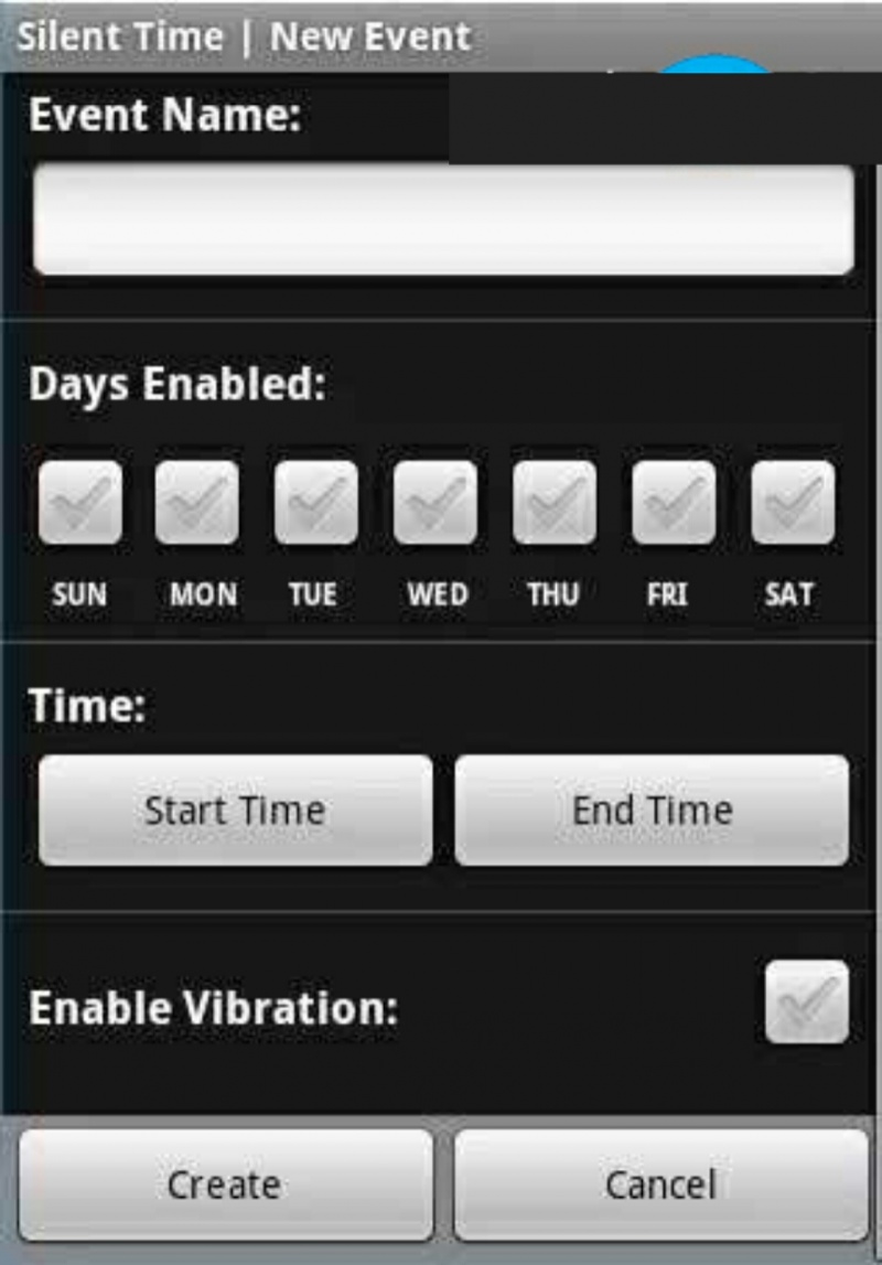 ৩) তারপর ইভেন্টের নাম এবং দিন নির্ধারণ করে অটোমেটিক আপনার মোবাইল সাইলেন্ট হওয়ার জন্য Start time -এ সাইলেন্ট হওয়ার সময় এবং End Time-এ জেনারেল (রিং) মোডে যাওয়ার সময় সেট করে দিন।
