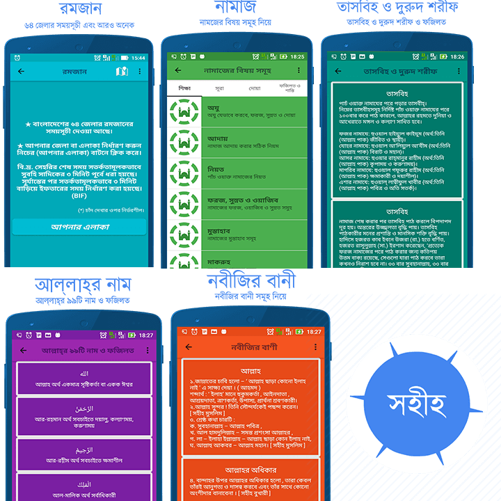 নামাজের শিক্ষা, সূরা, দোয়া, আল্লাহ্র ৯৯টি নাম, তাসবিহ ও দুরুদ শরীফ, নবীজির বাণী ও আরও অনেক কিছু ইসলামিক বিষয়| ডাউনলোড