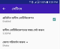 * সেটিংস থেকে নোটিফিকেশনের সময়, জেলার নাম ইত্যাদি পরিবর্তনের সুযোগ রয়েছে।