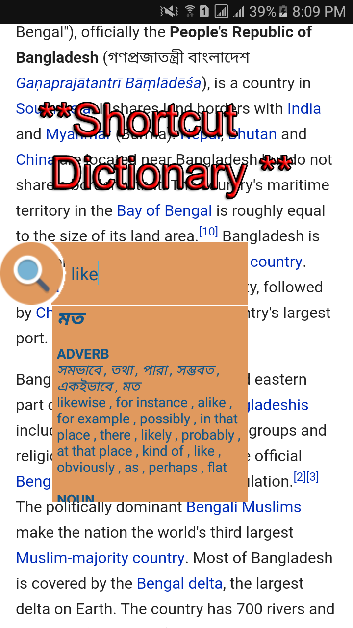আজকে যে ডিকশনারির কথা বলবো সেটা আমার দেখা মোবাইলের জন্য বেস্ট ইংলিশ টু বাংলা ডিকশনারি।