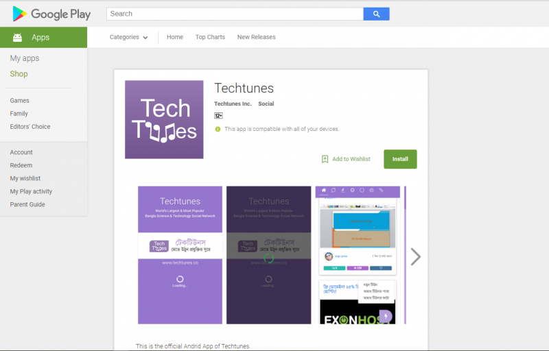 অথবা Play Store এ সার্চ দিন Techtune Inc লিখে।