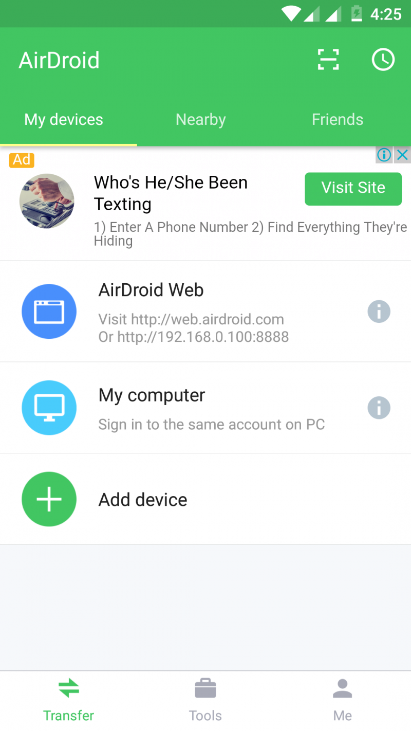 এই অ্যাপটি অনেকেই হয়ত কমবেশি চেনেন। এই অ্যাপটির সাহায্যে আপনি আপনার পিসি এবং ফোন এর মধ্যে যেকোনো ধরনের ফাইল ট্রান্সফার করতে পারবেন কোন ধরনের ক্যাবল বা কোন ধরনের তারযুক্ত সংযোগ ছাড়াই। কিন্তু এক্ষেত্রে আপনার পিসি/ল্যাপটপ এবং আপনার ফোনকে একই নেটওয়ার্কে কানেক্টেড থাকতে হবে। এই অ্যাপটি দিয়ে শুধুমাত্র ফাইল ট্রান্সফার ছাড়াও আরও কিছু কাজ করতে পারবেন। যেমন, স্ক্রিন শেয়ারিং, স্ক্রিন রেকর্ডিং, ফোনের ফাইলস এর ব্যাকআপ, ইন্টারনেট শেয়ারিং এবং আরও অনেক কিছু।