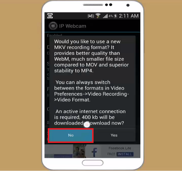 সবাইকে “টেক পরিবার” এর পক্ষ থেকে শুভেচ্ছা এবং বরাবরের মত আপনাদের জন্য আজকে নিয়ে এসেছি একটি অসাধারন টিপস। আর সেটি হচ্ছে কিভাবে আপনি আপনার হাতে থাকা অ্যান্ড্রয়েড মোবাইলটিকে খুব সহজেই সিসিটিভি ক্যামেরা/ওয়েবক্যাম/স্পাইক্যাম হিসেবে ব্যবহার করতে পারেন। প্রথমে আপনার অ্যান্ড্রয়েড মোবাইলে একটি অ্যাপস ডাউনলোড এবং ইনস্টল করতে হবে। অ্যাপসটির নাম হচ্ছে “আইপি ওয়েবক্যাম (IP Webcam)”। কিভাবে ডাউনলোড এবং ইনস্টল করতে হবে সেটি জানতে চেয়ে আমাকে লজ্জা দিবেন না। ডাউনলোড এবং ইনস্টল করার পর অ্যাপসটি ওপেন করবেন। অ্যাপসটি ওপেন করার পর একদম নিচে “Start Server” নামে একটি অপশন আছে সেটিতে ক্লিক করবেন। তারপর “No” অপশনে ক্লিক করবেন।