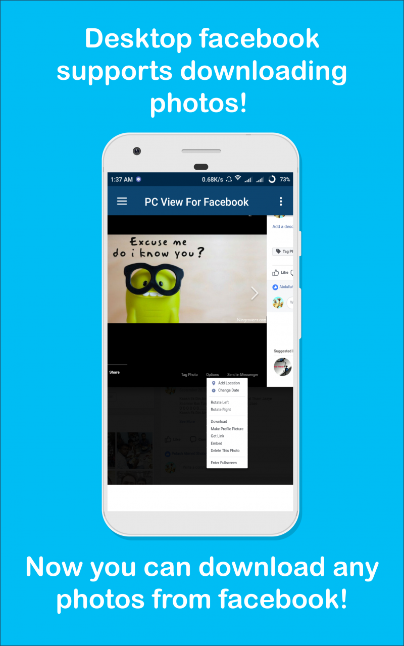 অ্যাপটি অ্যান্ড্রয়েড অ্যাপ এর সবচাইতে নির্ভরযোগ্য সোর্স প্লে স্টোরেই পাবেন। নিচের Play Store Download Link থেকে Download করে ইন্সটল করে নিন অথবা আপনার ফোন থেকে প্লে স্টোরে ঢুকে "PC View For Facebook" লিখে সার্চ করে এই অ্যাপটি ডাউনলোড ও ইন্সটল করে নিন।