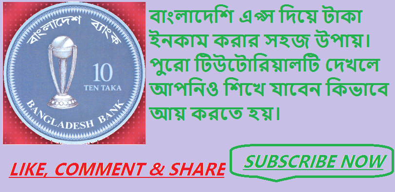 এটি একটি বাংলাদেশি এপস। এন্ড্রয়েড ফোনের মাধ্যমে আপনি অতি অল্প সময়ে টাকা ইনকাম করতে পারবেন। ইনকাম করবেন টাকায়, উঠাবেনও টাকায়। উঠাতে পারবেন রকেট এবং ফ্ল্যাক্সিলোডের মাধ্যমে।