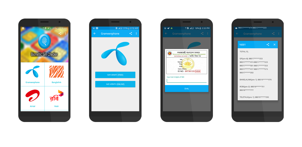 এই অ্যাপের সাহায্যে বাংলাদেশের সকল অপারেটরের (গ্রামীনফোন, বাংলালিঙ্ক, এয়ারটেল, টেলিটক) সিমগুলো যাচাই করতে পারবেন এবং এর সবকিছুই করতে পারবেন একদম ফ্রিতে। যদি এইটুকু এসে অ্যাপটিকে আপনার প্রয়োজন বলে মনে হয় তাহলে ডাউনলোড করুন এখান থেকে।