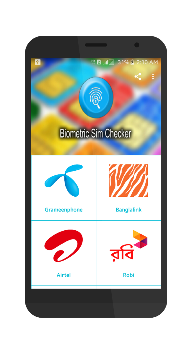 অ্যাপটি ইন্সটল করার পর এই ইউজার ইন্টারফেইসটি আপনার সামনে প্রদশিত হবে। সেখান থেকে আপনি যে অপারেটরের সিম যাচাই করতে চান তাতে কিল্ক করুন।