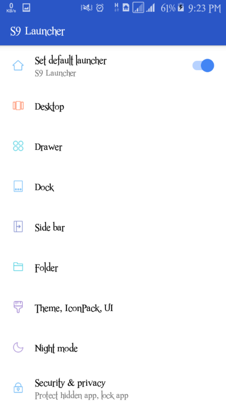 1.Launcher https://play.google.com/store/apps/details?id=com.hongapp.s9launcher.galaxys9.themes8