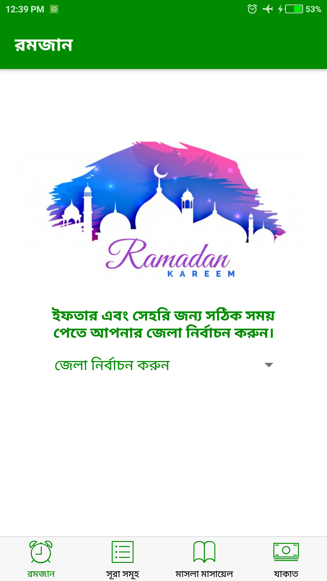 প্রথমে অ্যাপ এর শুরু তে আপনি আপনার জেলা সিলেক্ট করে দিবেন তাতেই কাজ শেষ। এর পর থেকে অ্যাপ নিজে নিজে আপনার সেহরি ও ইফতারের সময় দেখাবে। এছাড়াও এই অ্যাপ এ পাবেন ছোট সুরাসমূহ, রোজার বিভিন্ন মাসলা মাসায়েল, আমল, তারাবি, শবে কদর, যাকাতের হিসাব ইত্যাদি সহ নানা ইসলামিক তথ্য। আশা করি আপনাদের অ্যাপটি ভাল লাগবে।