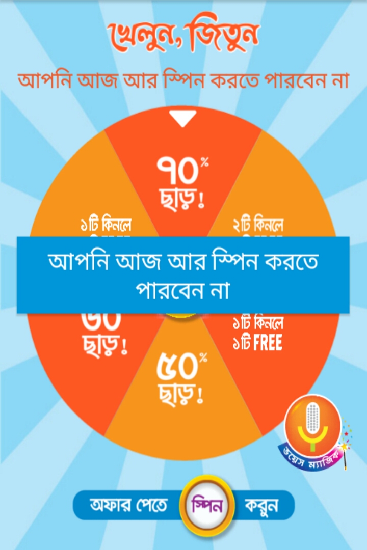 আজকের ডিল এর নতুন ফিচার হচ্ছে আপনি স্পিন মাধ্যমে আপনি বিভিন্ন অফার পেতে পারেন। আপনি spin ঘুরিয়ে অফার পেতে পারেন। নিচে চিত্র টি দেখেন