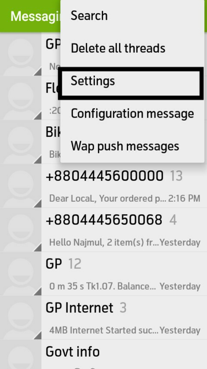 আপনারা ম্যাসেজের ব্যাকগ্রাউন্ড পরিবর্তন করতে নিচের স্ক্রিনশট ফলো করুন।