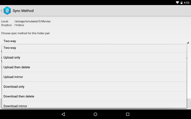 ব্যাকগ্রাউন্ডে অটোমেটিক্যালি ফাইলগুলোকে ব্যাকআপ করা ছাড়াও Dropsync টিতে রয়েছে আরো বেশ কয়েকটি কাস্টমাইজেবল অপশন। যেমন আপনি দুটি ফোল্ডারকে একে অপরের mirror হিসেবে ব্যবহার করতে পারবেন, কোনো কিছু ডাউনলোড না করেই আপনার ফোন থেকে ড্রপবক্সে ফাইল আপলোড করতে পারবেন। এছাড়াও ডাটা sync করার কাস্টম অপশনও আপনি পাবেন এই অ্যাপে।