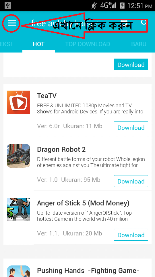 তারপর অ্যাপসটি ওপেন করবেন। অ্যাপসটির ভাষা ইন্দোনিশিয়ান থাকলে সেটা ইংরেজি করে নিবেন। কিভাবে করবেন জানতে স্কিন শর্ট ফলো করুন।