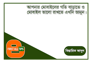 আমরা আমাদের মোবাইলের কাজ করার সময় যখন একই সাথে বেশী App Open করে কাজ করি তখন অনেক সময় আমাদের মোবাইলটি স্লো হয়ে যায়। যাতে করে আমাদের কাজ বিঘ্নতা ঘটে থাকে মোবাইল থেকে কোন App Open করতে সময় লেগে যায় এবং নেট থেকে কোন প্রয়োজনীয় ফাইল বা ভিডিও ডাউনলোড করতে গেলে সময় লেগে যায়, অনেক সময় মোবাইলটি হ্যাং হয়ে যায়। এর কারন হচ্ছে আমরা কখনো মোবাইলের সঠিক নিয়মে যত্ন নেই না। তাই আমাদের নির্দেশনা অনুযায়ী নিচে দেওয়া টিপসটি অনুসরণ করে খুব সহজেই আপনার মোবাইলের আয়ু বৃদ্ধি করতে পারবেন এবং সেই সাথে মোবাইলের গতি বৃদ্ধি পাবে।