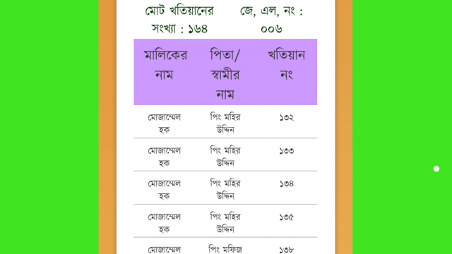 একটা কথা, , কোনো তথ্য খুঁজে পাওয়া যাচ্ছেনা?এমন যদি অাসে তাহলে ভেবে নিতে হবে অাপনার দেওয়া তথ্যটি দলিলে/খতিয়ান এর সাথে মিলছেনা। এতে অামাদের সার্ভার বা অ্যাপ কোনেভাবেই দায়ী নয়। উপযুক্ত তথ্য প্রদানের মাধ্যমেই অাপনি অাপনার খতিয়ান/জমির তথ্য জানতে পারবেন।