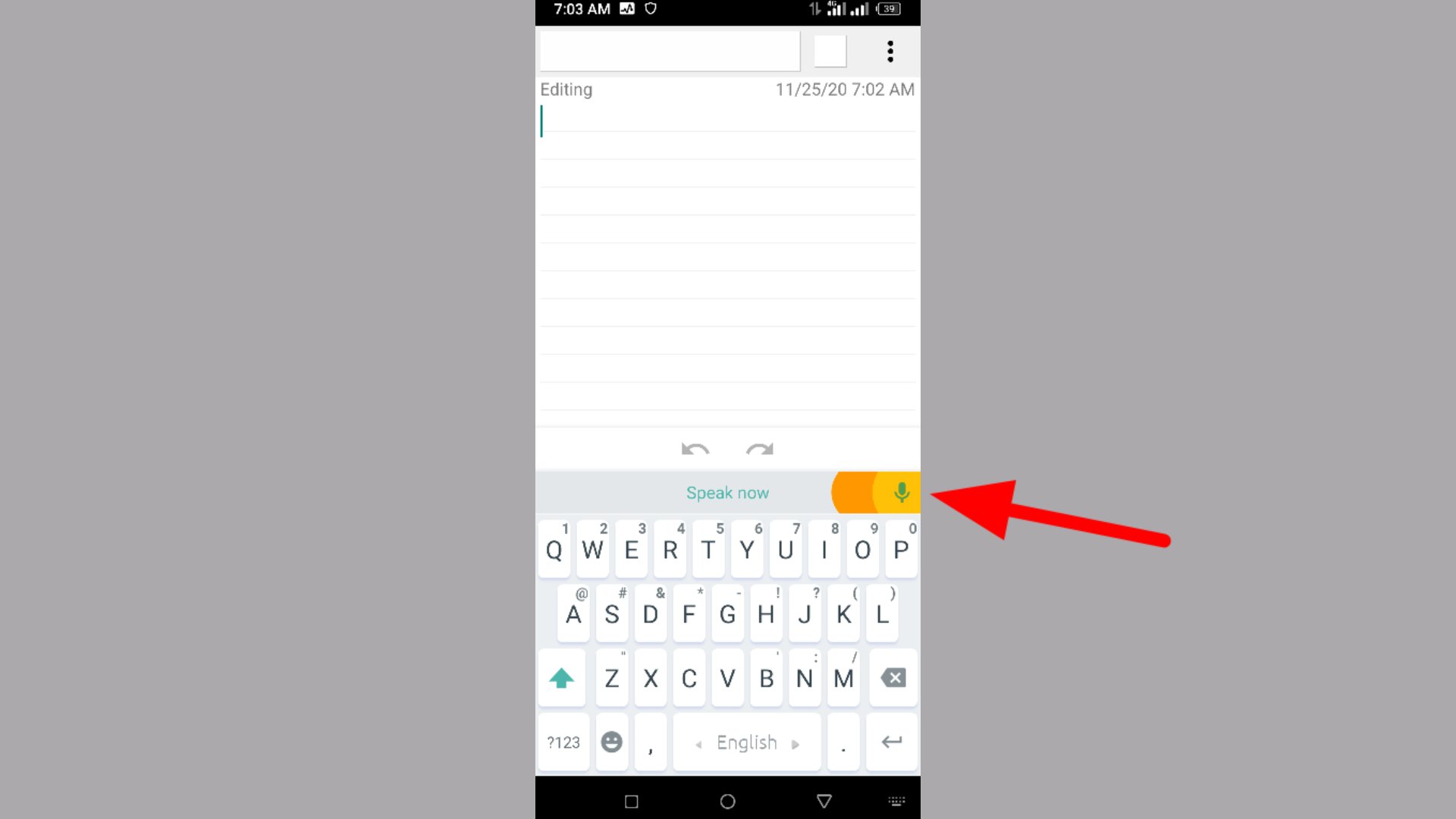 ১৩. এরপর ভয়েস দিয়ে টাইপিং করার জন্য উপরে ডানদিকে দেখতে পাবেন একটি মাইক্রোফোন আইকন আপনি এখানে ক্লিক করুন। এটিতে ক্লিক করার পর আপনি মুখে যা বলবেন সেটা এখানে টাইপ হতে থাকবে। মজার ব্যাপার হলো আপনি এখানে কিবোর্ডে যদি বাংলা ভাষা সিলেক্ট করেন, তাহলে এখানে বাংলা টাইপিং হবে, আবার যদি ইংরেজি ভাষা সিলেক্ট করেন তাহলে ইংরেজি টাইপ হবে।