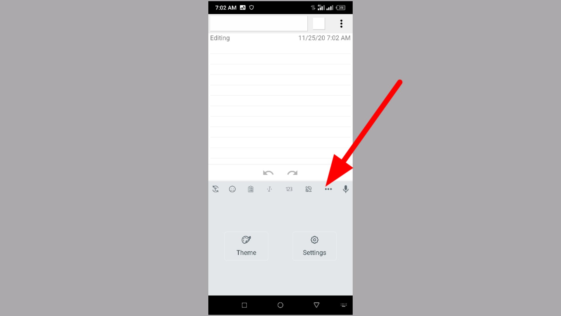১২. এখন আপনি যদি কিবোর্ড থেকে সেটিং এ যেতে চান অথবা Theme পরিবর্তন করতে চান তবে আপনি কিবোর্ডের উপরে দেখতে পাবেন three dot আইকন। আপনি এখানে ক্লিক করুন। তারপর আপনি সেটিং অথবা থিম এখান থেকে পরিবর্তন করে নিতে পারেন।