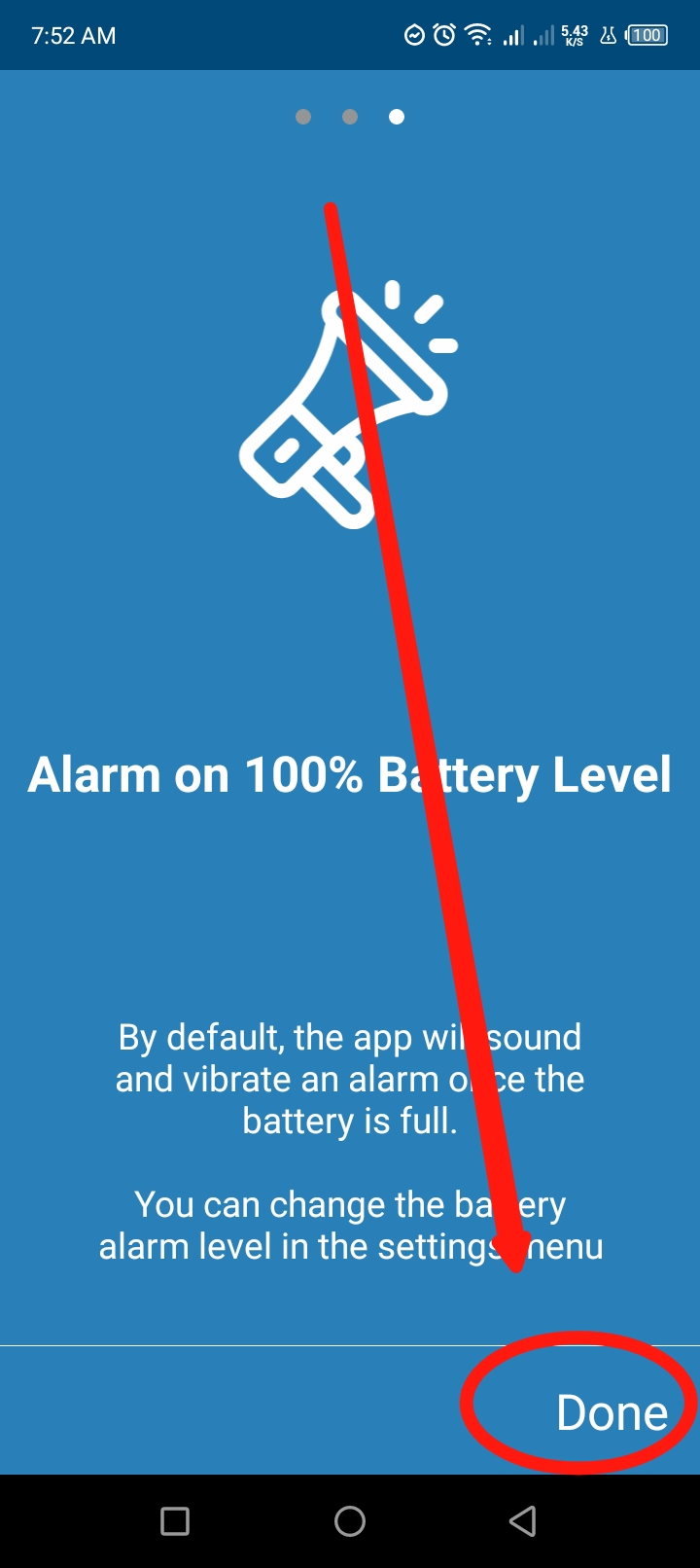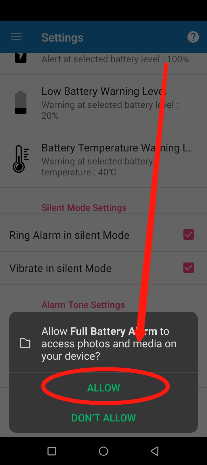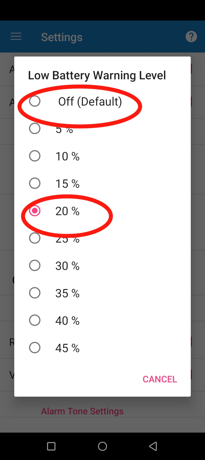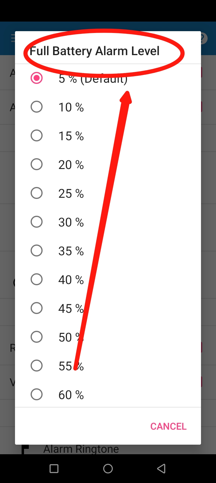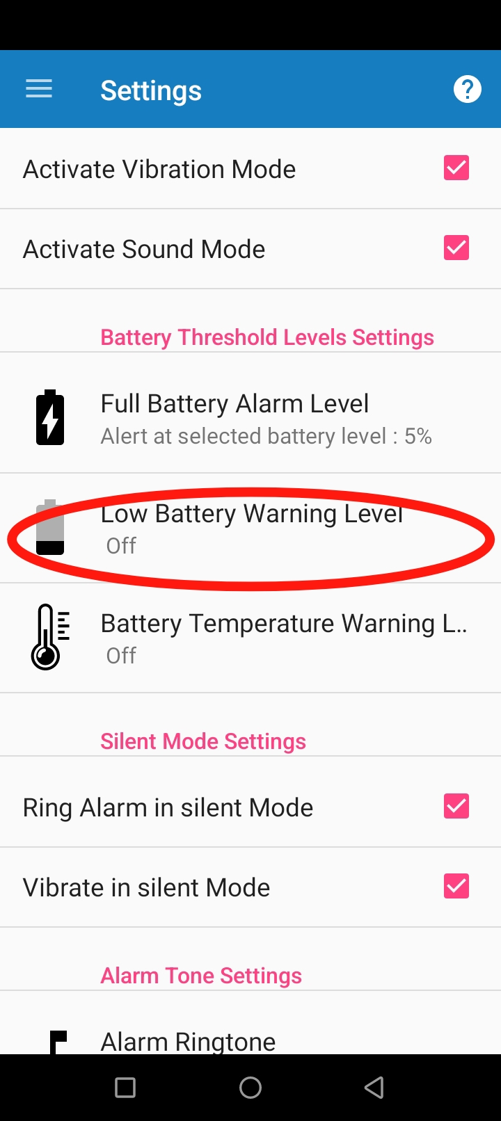 এখানে আপনি সর্বনিম্ন কত শতাংশ চার্জ শেষ হয়ে গেলে আপনি আপনার ফোনে চার্জ কমে যাওয়ার অ্যালার্ম বাজবে সেটা নির্ণয় করতে পারবেন।