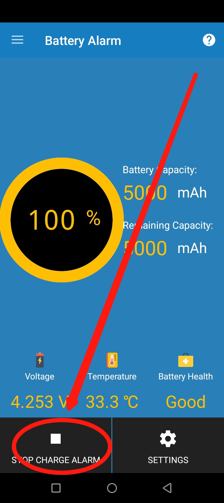 প্রথমে আপনার ফোনটি চার্জে লাগান। তারপর এই অ্যাপস টি ওপেন করে Start Charge Alarm এ ক্লিক করুন। তাহলে তাহলে অপশনটি চালু হয়ে Stop Charge Alarm লেখা উঠে যাবে। এরপর নিশ্চিন্তে চার্জে লাগিয়ে রাখুন। চার্জ ফুল হয়ে গেলে অটোমেটিক অ্যালার্ম বেজে উঠবে।