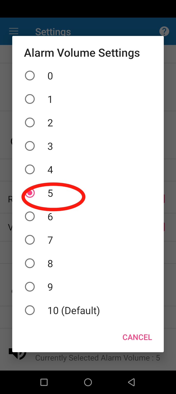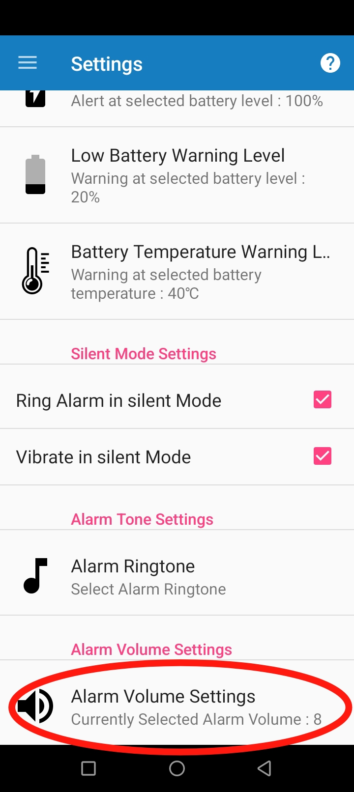 Alarm Volume setting এ ক্লিক করুন।