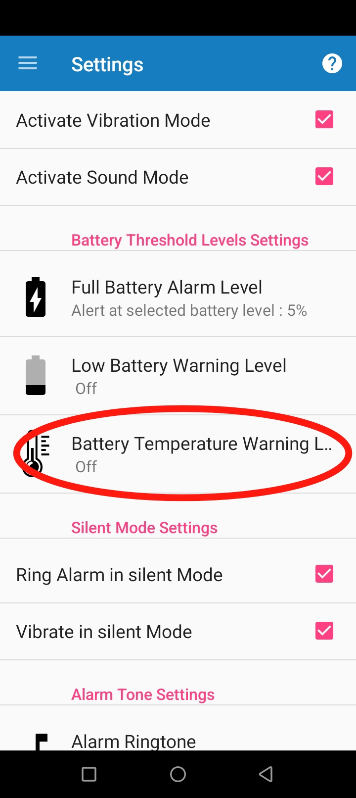 Battery Temperature Warning Level এ ক্লিক করুন।