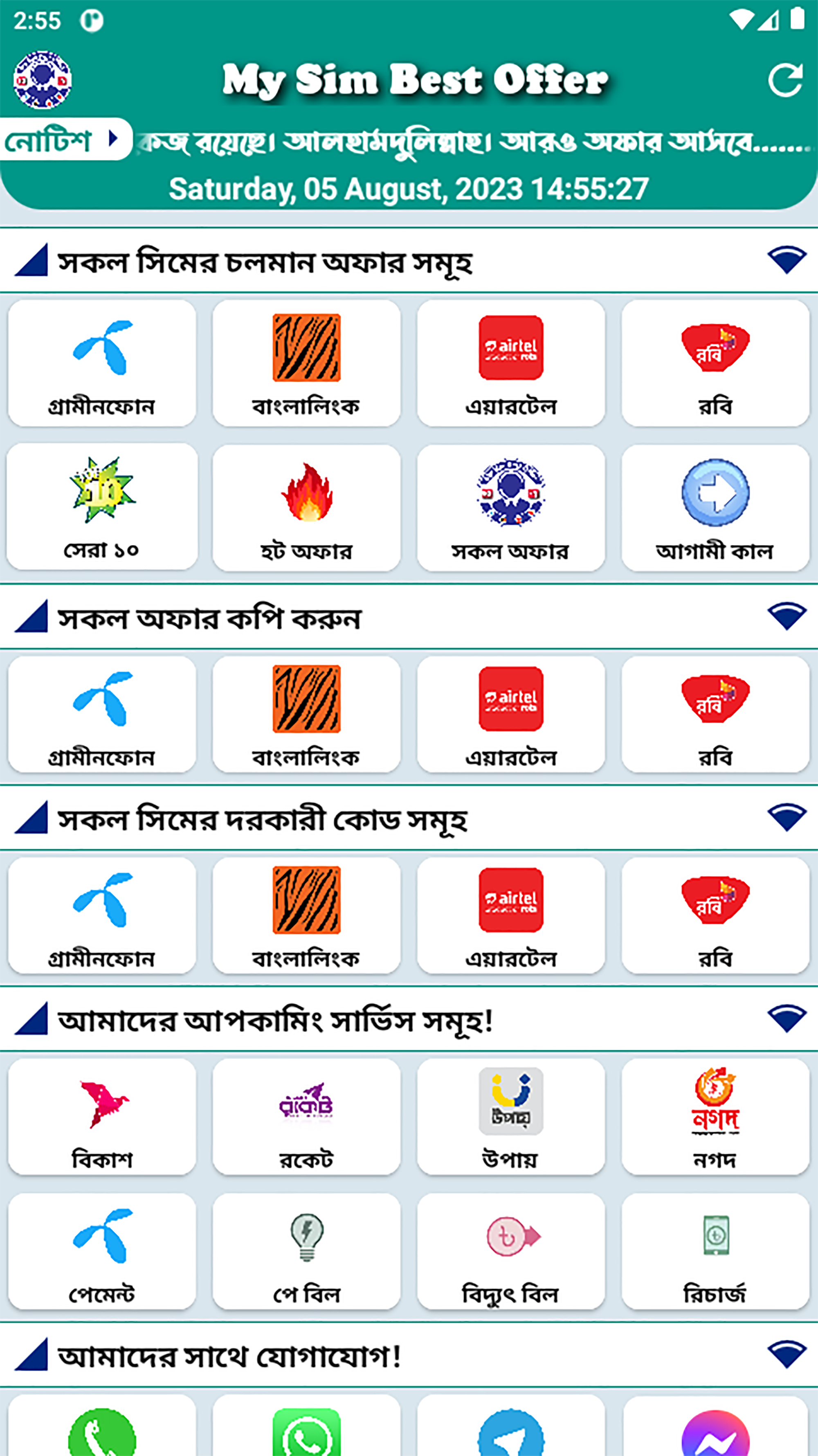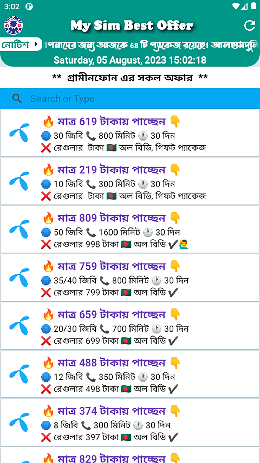 এখান থেকে আপনি সব ধরনের সিম কোম্পানীর নামের উপর টাচ করলে উক্ত সিমের চলমান অফার গুলো দেখতে পারবেন।