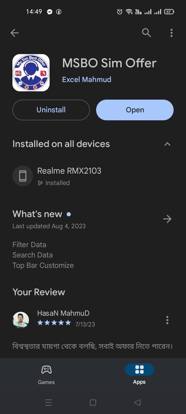 Apps টির নাম My Sim Best Offer প্লে স্টোরে আপনি পেয়ে যাবেন MSBO Sim Offer নামে।