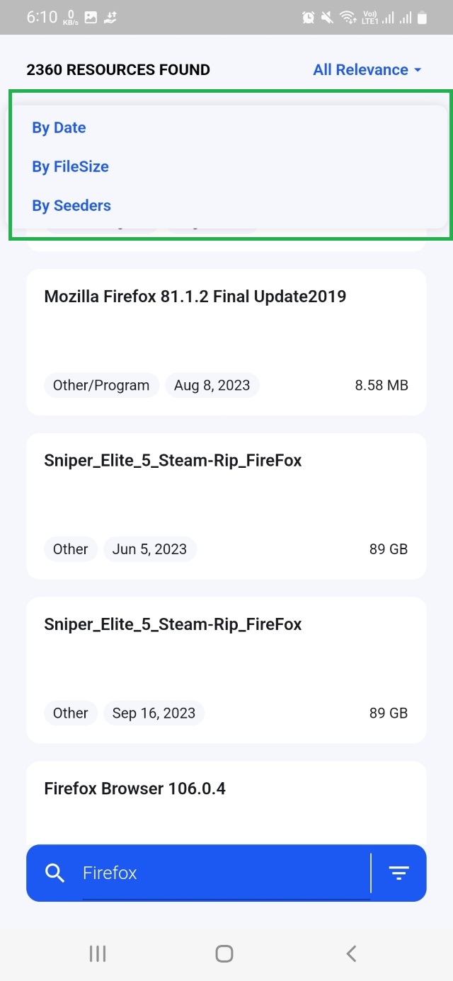 সার্চ দেয়ার পর সব গুলো রেজাল্ট দেখাবে