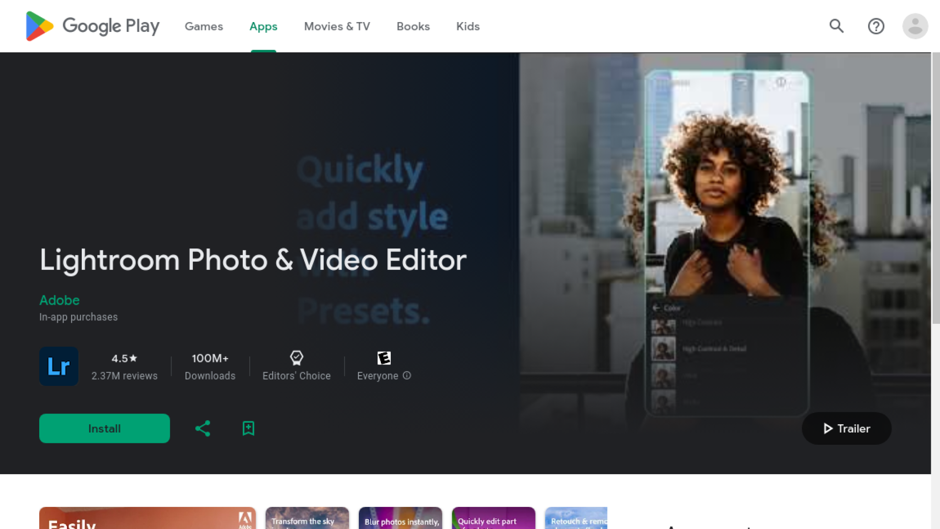 এটি বর্তমানে অনেক জনপ্রিয় একটি উন্নত ফটো এডিটিং অ্যাপ, যা ছবির গুণগত মান বজায় রাখা এবং প্রসেসিং করতে ব্যবহার করা হয়। Lightroom ক্যামেরা অ্যাপ্লিকেশন এবং টোলসেট ব্যবহার করে ছবি ব্যাকগ্রাউন্ড আপগ্রেড করার জন্য অনেকগুলো সুন্দর সুন্দর টুলস প্রদান করে। সবগুলো টুলস এর মধ্য কিছু গুরুত্বপূর্ণ ফিচার হল: