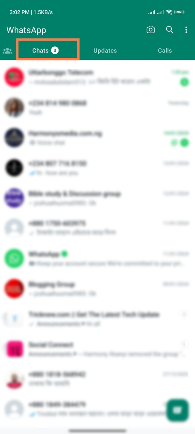 ২. এবার আপনারা আপনাদের অ্যাকাউন্ট টি Whatapp লগ-ইন করে নিবেন৷ তারপর নিচের মতো Whatsapp মেনু স্ক্রোল করবেন। মেনুবার স্ক্রোল করে Chats অপশনে আসবেন।