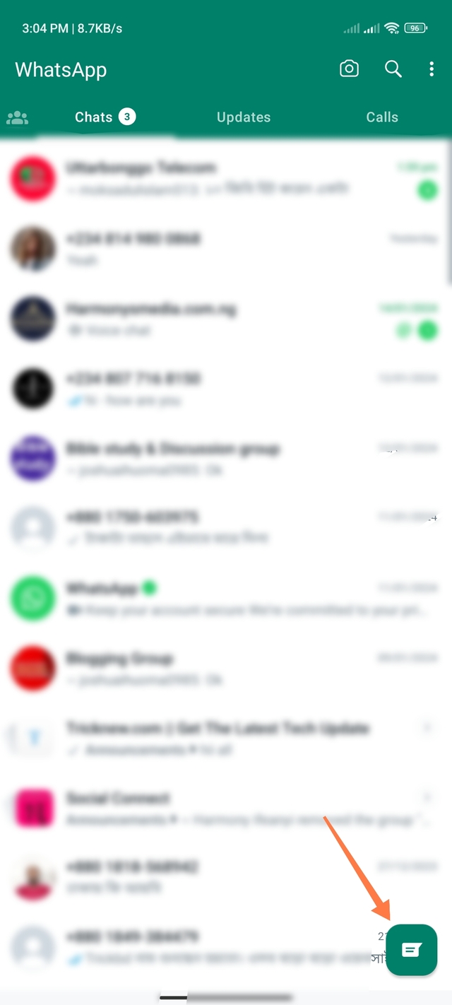 ৩. চ্যাট অপশনে আসার পর একদম নিচের Message আইকনে ক্লিক করবেন।